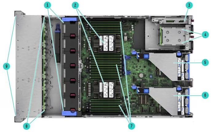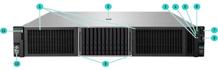 4. | 핫 플러그 이중화 HPE Flexible Slot 전원 공급 장치 | 9. | 드라이브 케이지 |